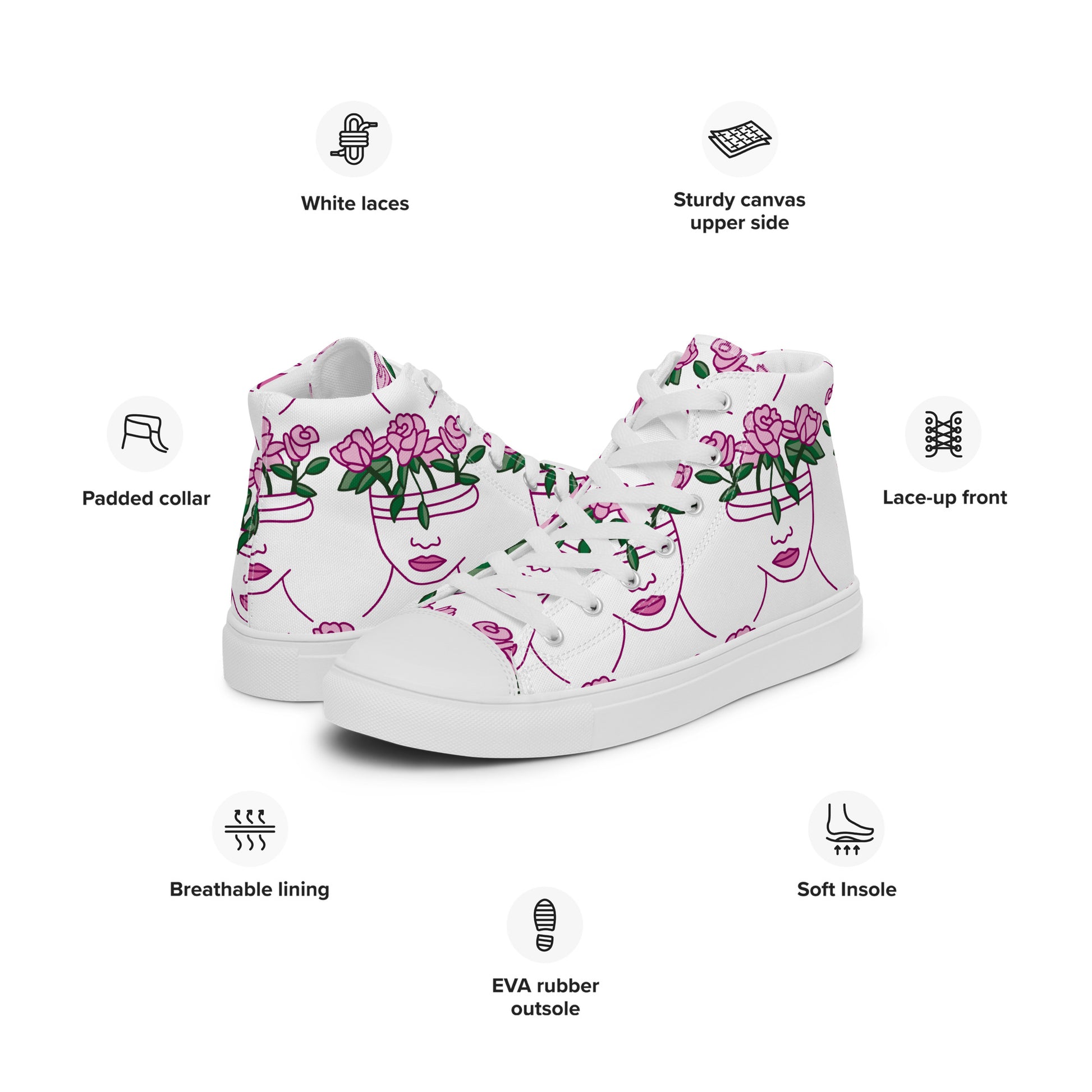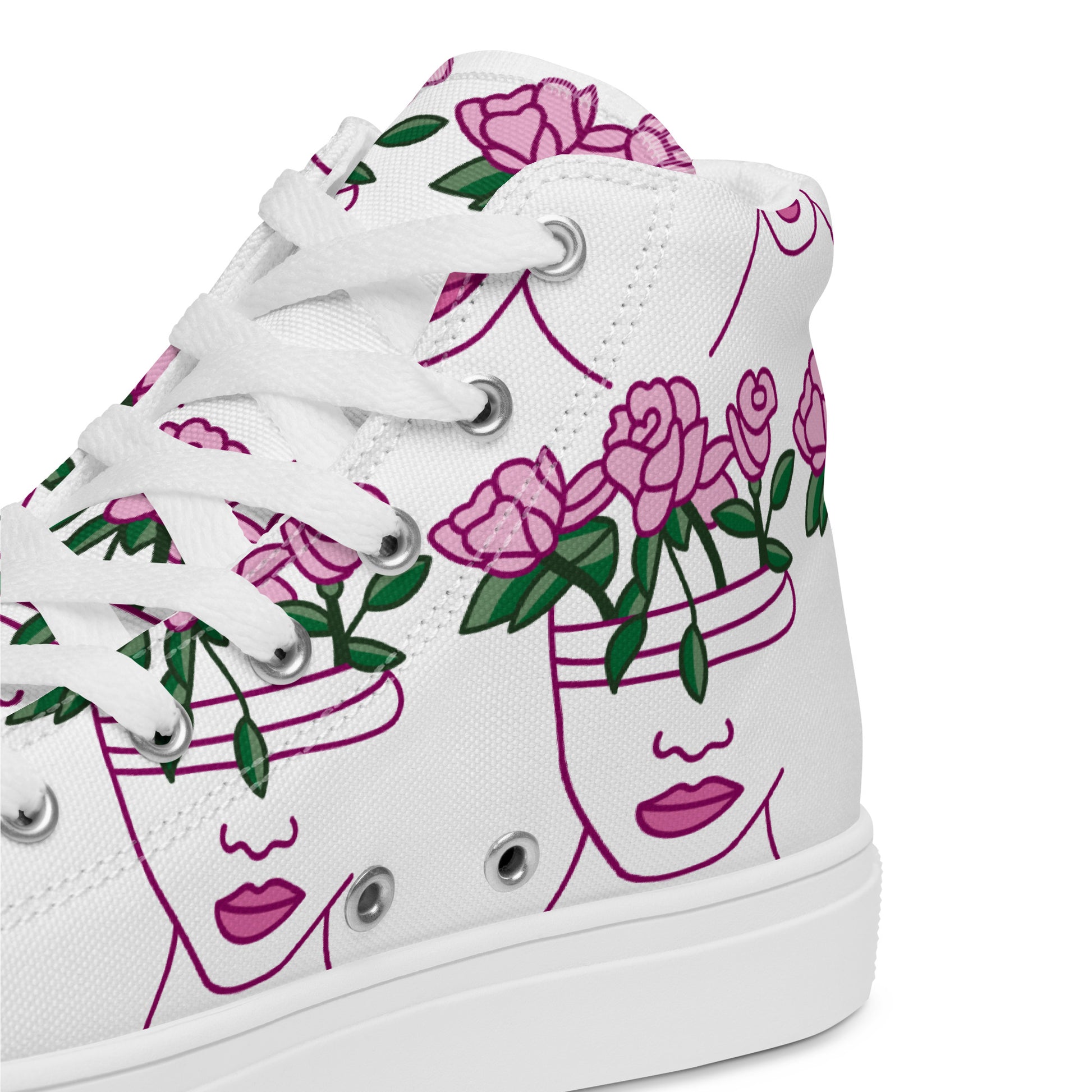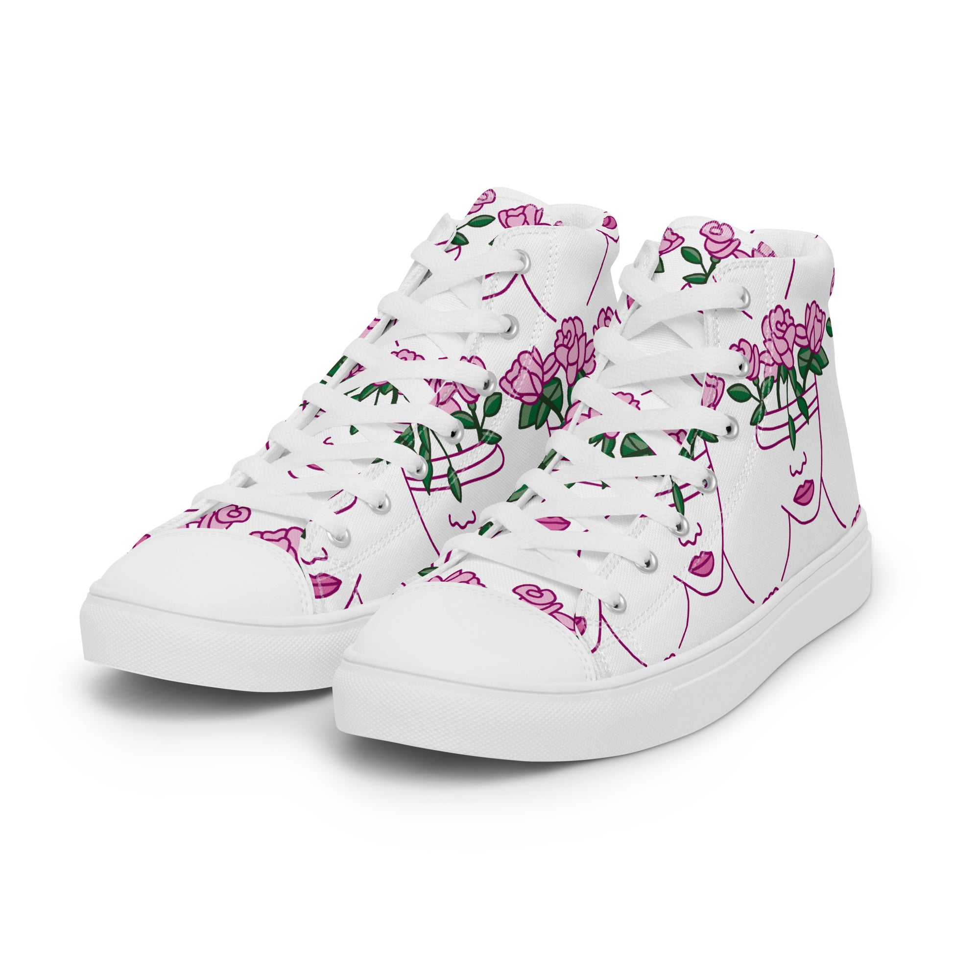 These High Top Sneakers for women with an Abstract Rose Pattern - Penelope, sound like a trendy and artistic choice for your outfits. Here are the details about these sneakers: