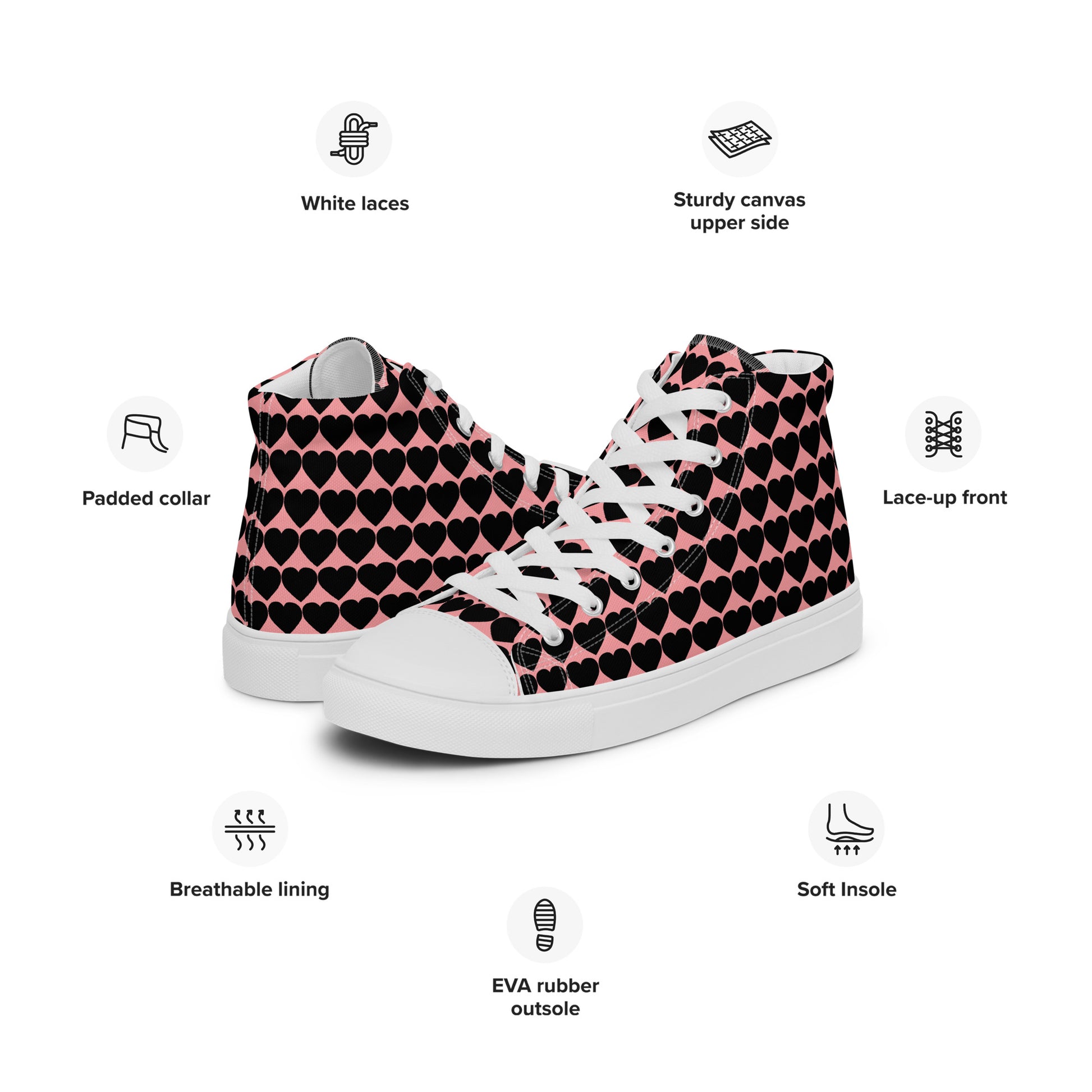 Women’s High Top Canvas Sneaker - Heart Pattern - Scarlet